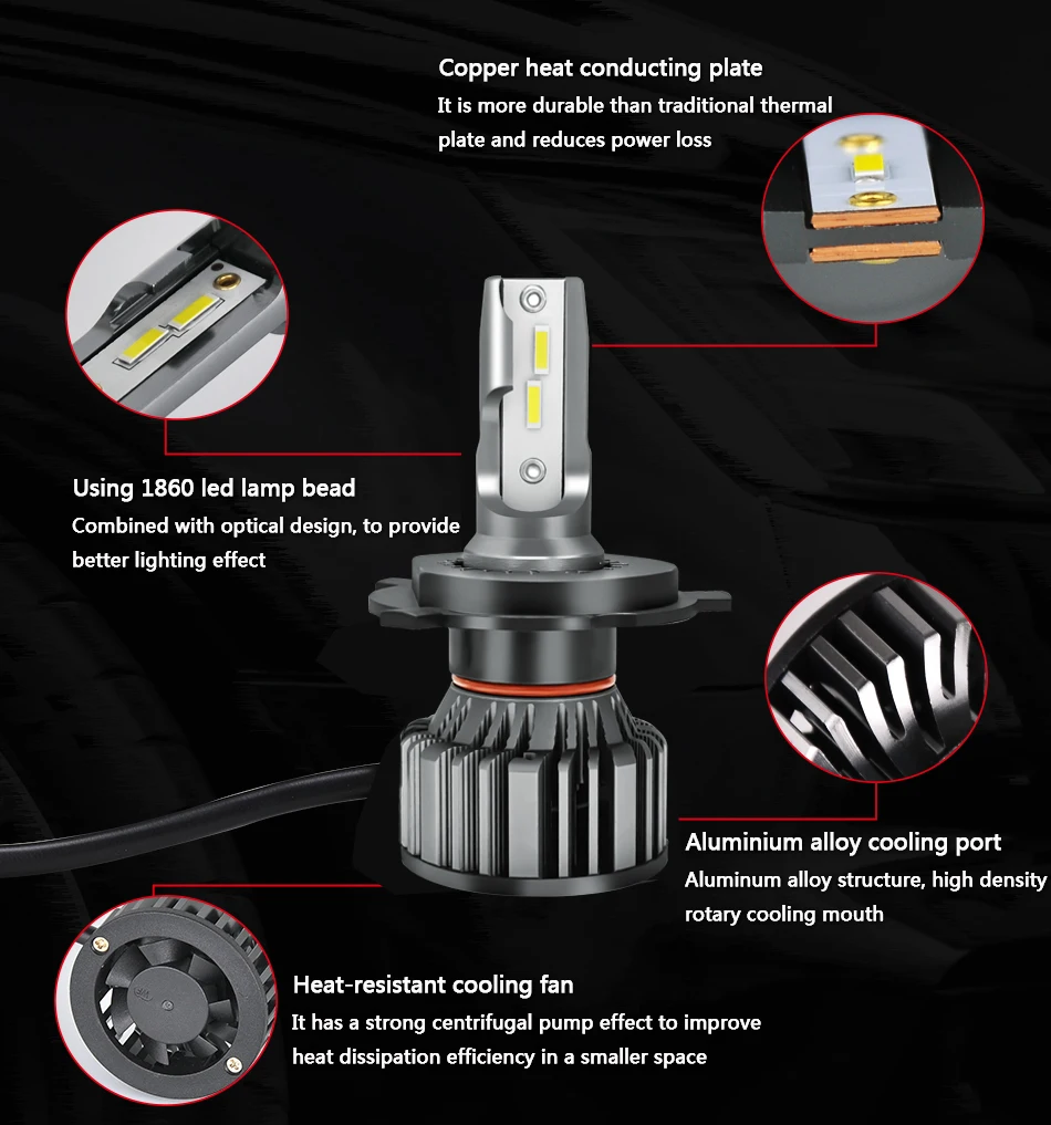 Purpose: two cooling channels for headlamp and fog lamp, one aluminum heat conduction system and 360 degree heat dissipation