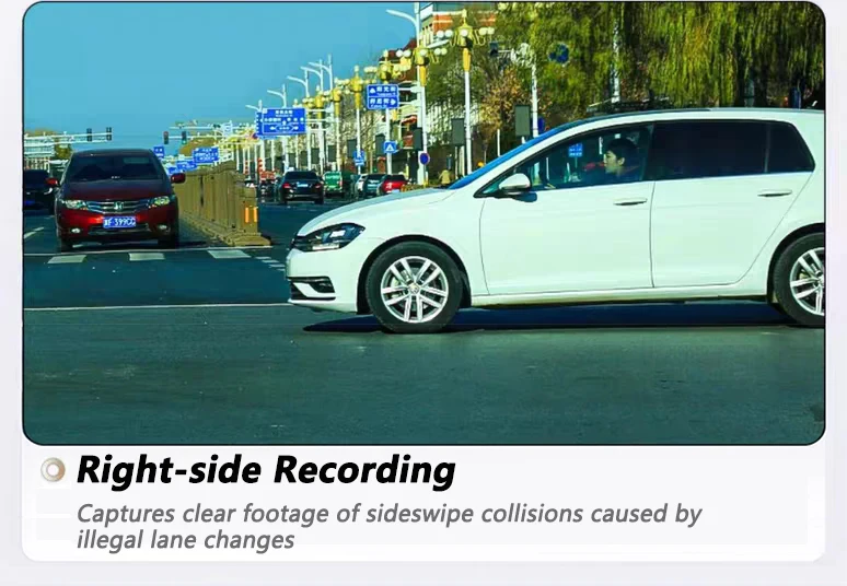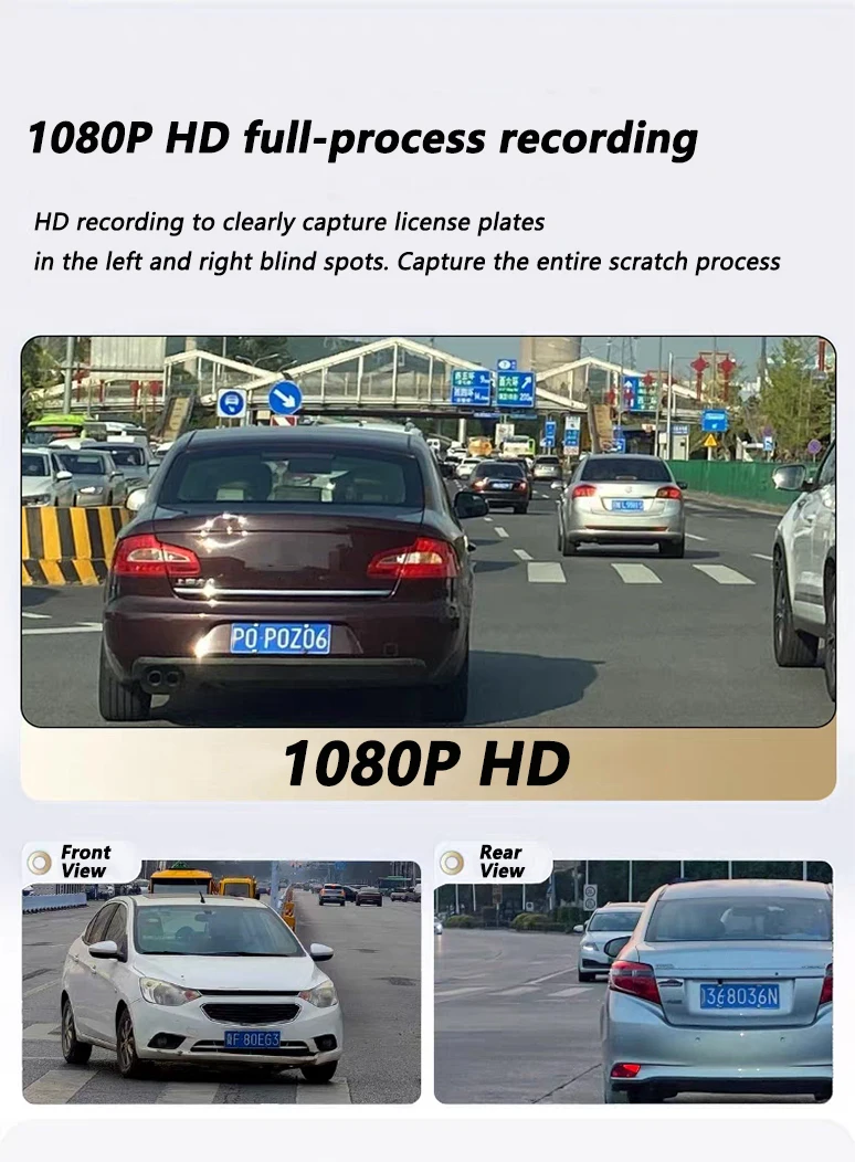 Full coverage of front, rear, and both flanks—eliminating blind spots. Capture every angle in disputes, vandalism, or accidents.
